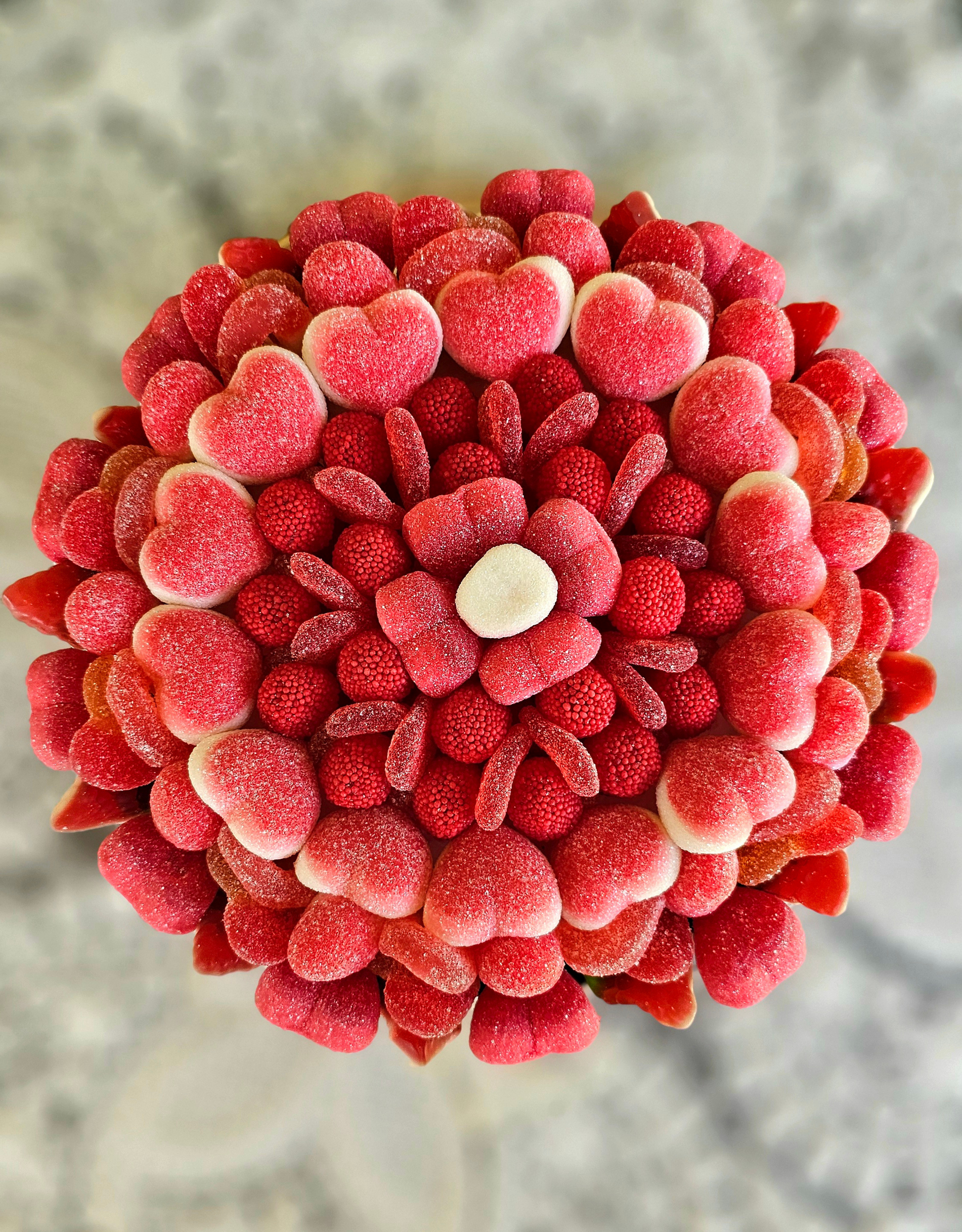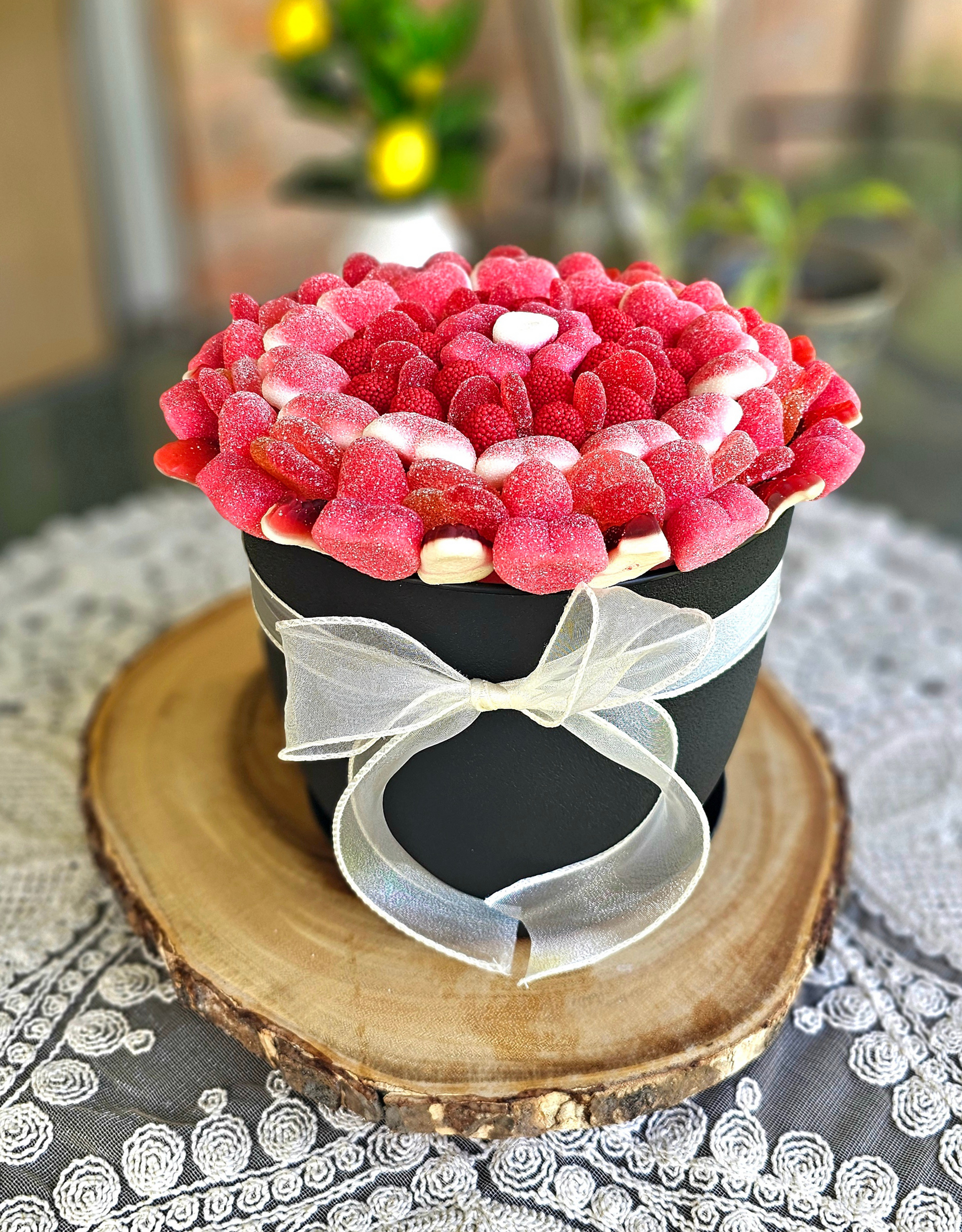 Bursting with charm and flavor, this Sweetheart Candy Gift Pot is filled to the brim with a handpicked mix of our best-selling sweet and sour heart-shaped gummies. Wrapped in an elegant black pot with a delicate bow, it's a stunning and tasty gift for birthdays, anniversaries, or just because. Edible Arrangements.